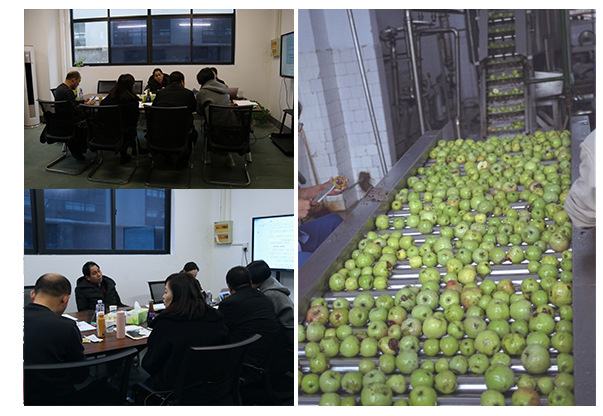 今天客户到厂详细考察了苹果汁生产线,工程师做了详细详细的讲解。